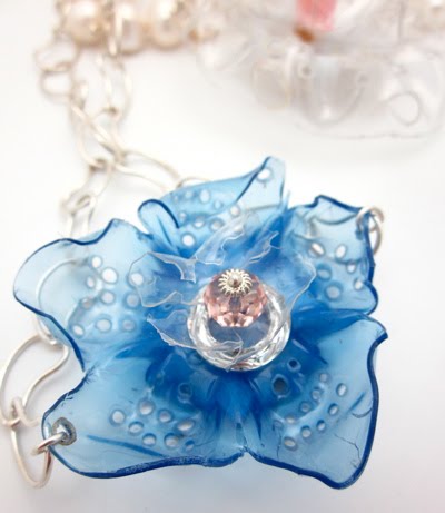 All you need is the little black dress. My friend Susan came over to play in my studio and we came up with this recycled plastic necklace. Natalie snagged it as soon as she saw it.